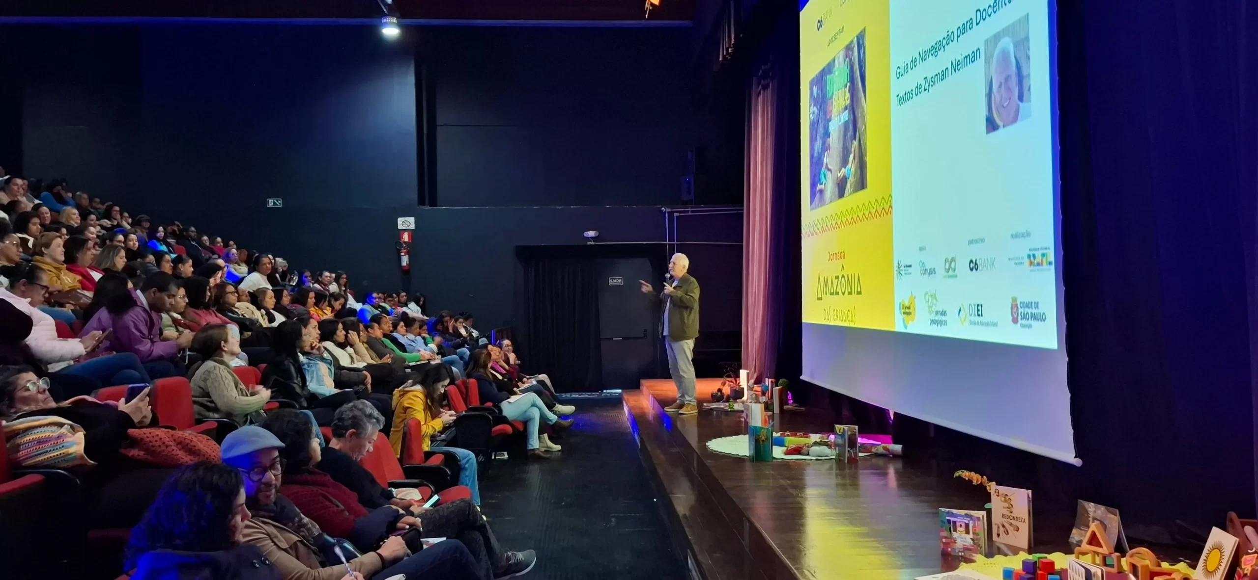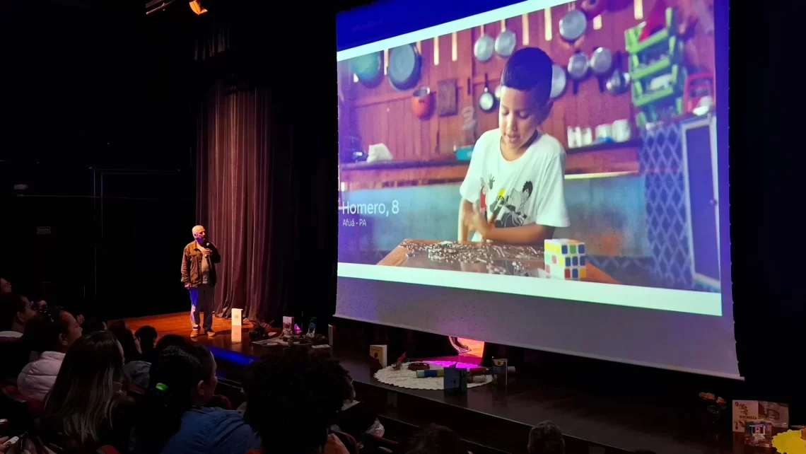 Depois da apresentação, rolou espaço para responder perguntas e debater a importância de levar para a sala de aula um Brasil que muitos nem imaginam existir: o Brasil das crianças que vivem na Amazônia e que estudam, brincam, sonham e buscam um futuro de oportunidades, justiça e igualdade social. A Jornada Amazônia das Crianças é uma importante ferramenta pedagógica que reúne conteúdos diversos e transversais à grade curricular.